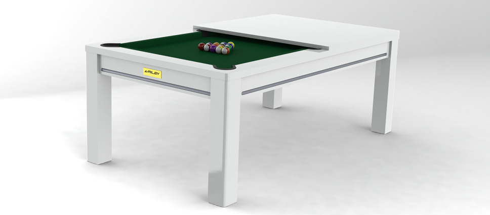 Biliardový stôl Riley Westminster - kombinovaný jedálensko-biliardový stôl, je vyrobený z dýhy, svojim vzhľadom je porovnateľný ku klasickému jedálenskému stolu, rovný rám so štvorcovými nohami dopĺňajú ozdobné lišty vo farbe dreva, jednodielna talianska bridlica o hrúbke 19 mm.