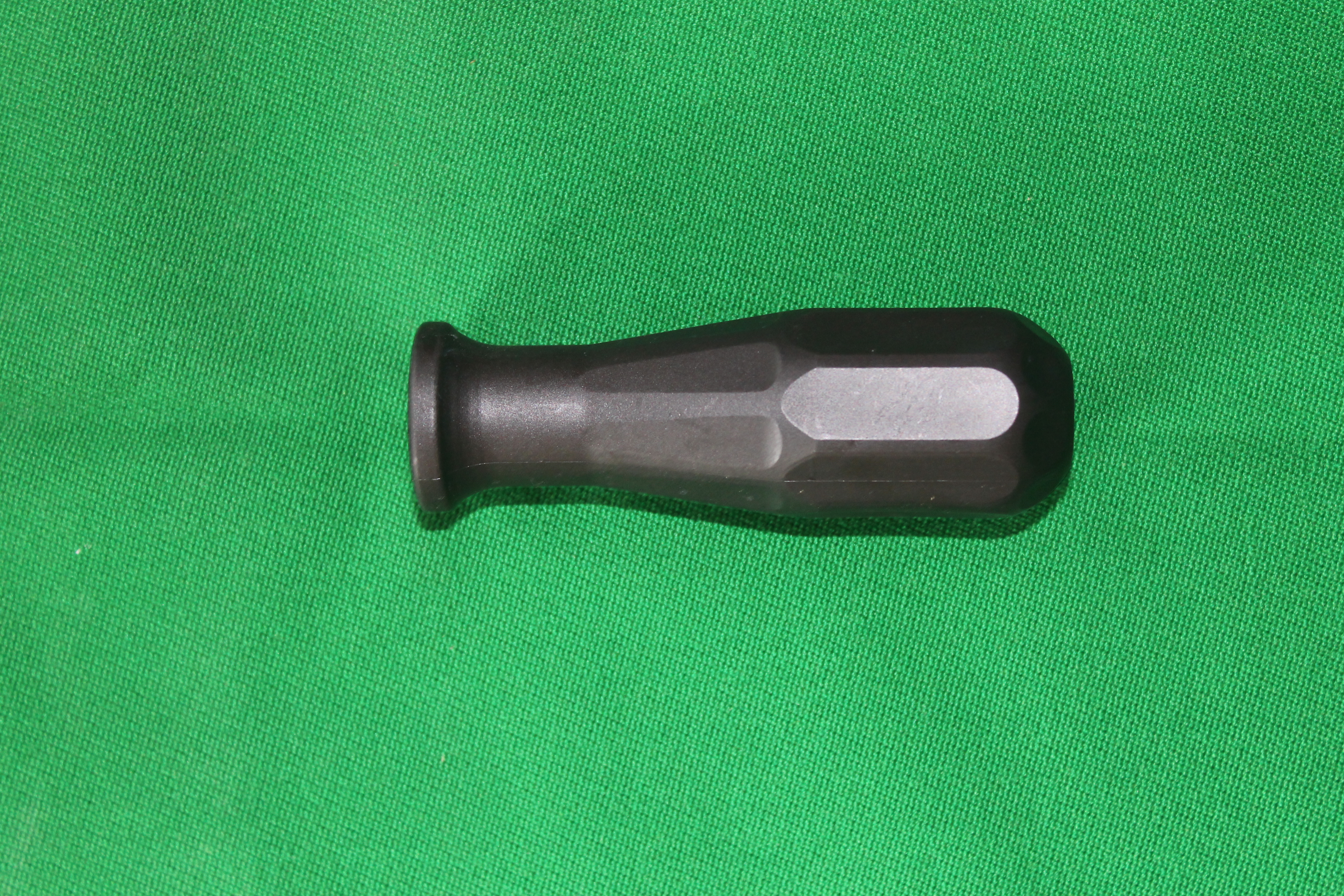 Malá rukoväť vyrobená z plastu, čiernej farby, určená na tyče stolného futbalu o priemere 16 mm.
