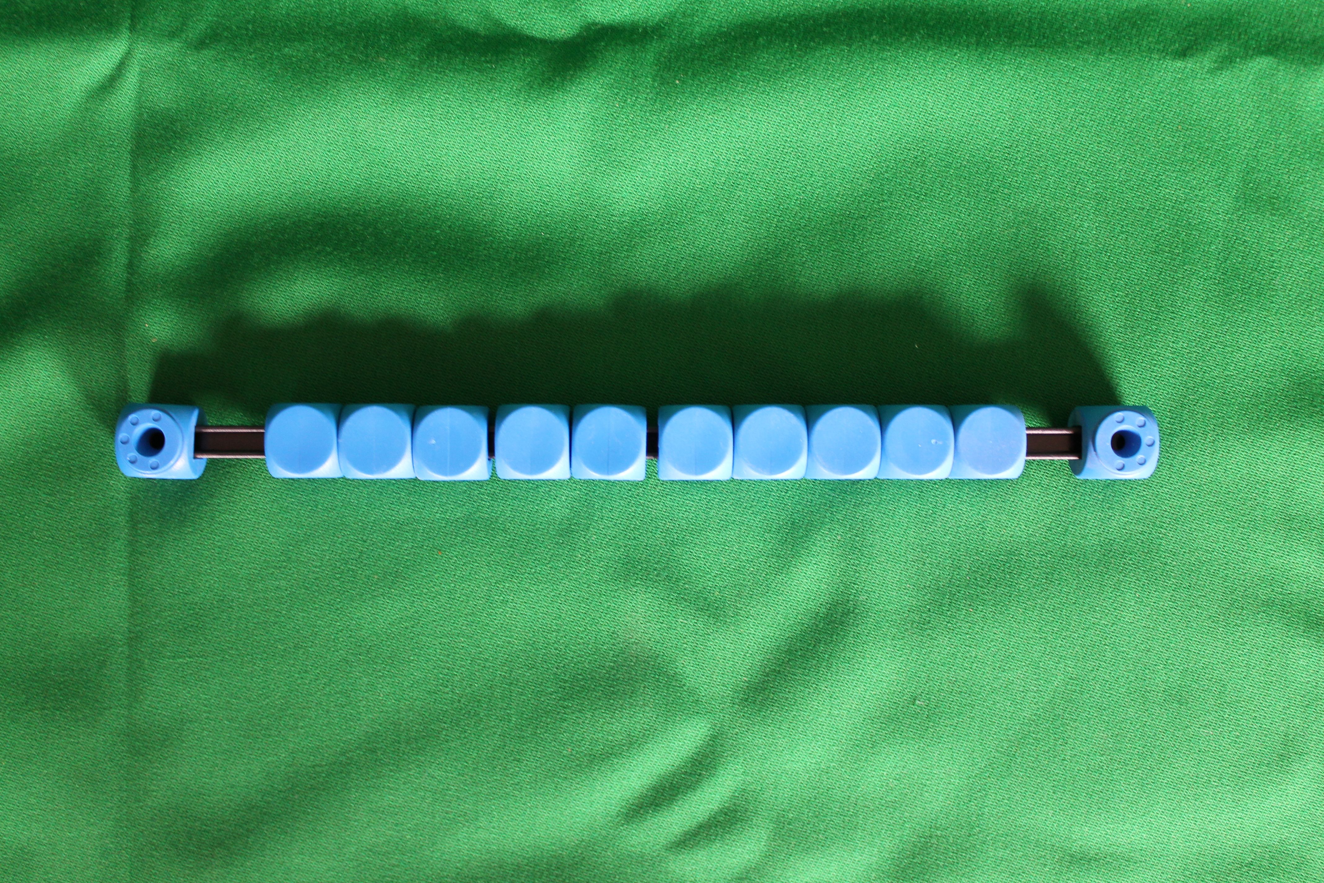 Počítadlo modrej farby na stolný futbal.