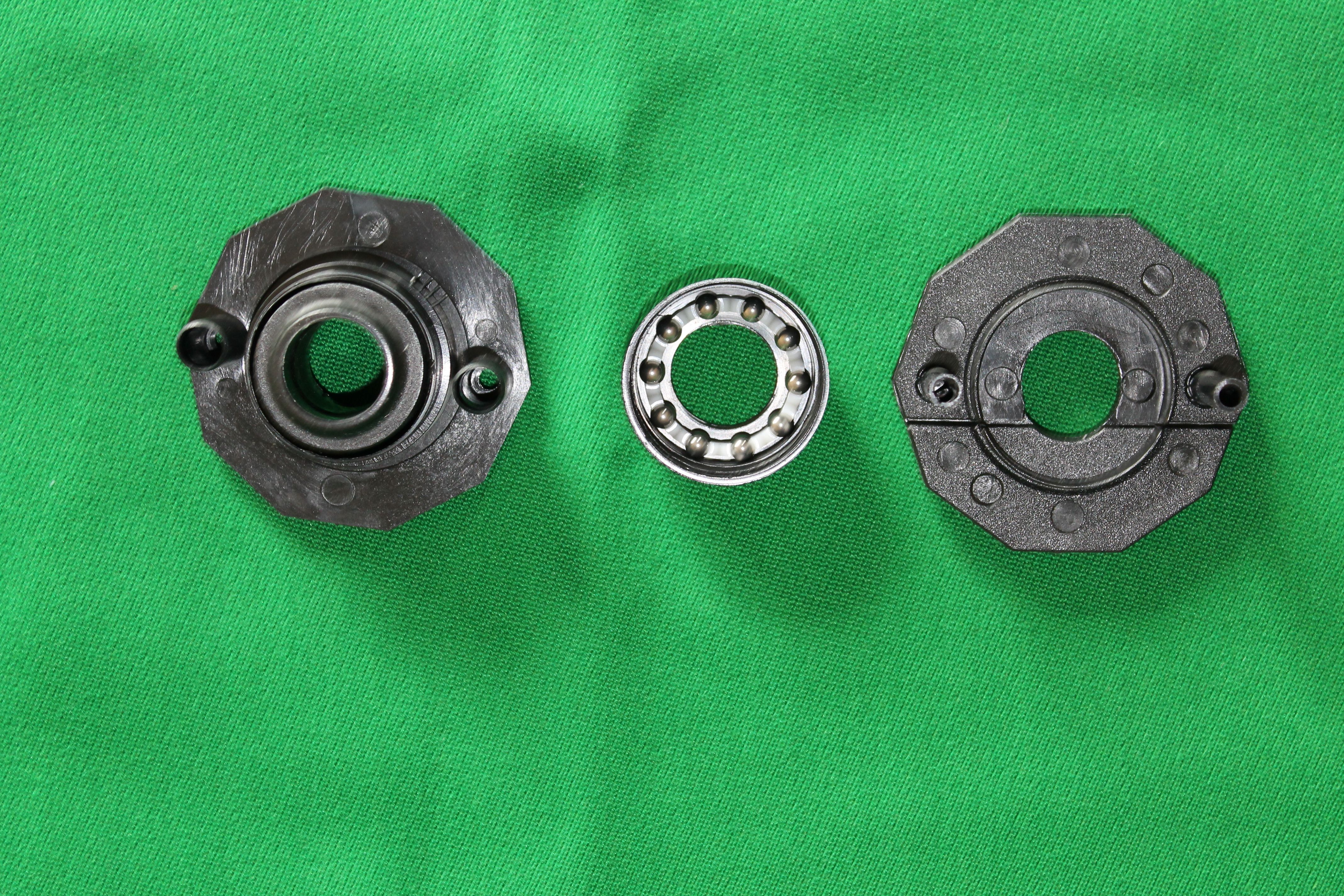 Ložisková priechodka vyrobená z plastu, vo vnútri s malými ložiskami , ktoré umožňujú ľahké otáčanie tyče. Priemer 16 mm.