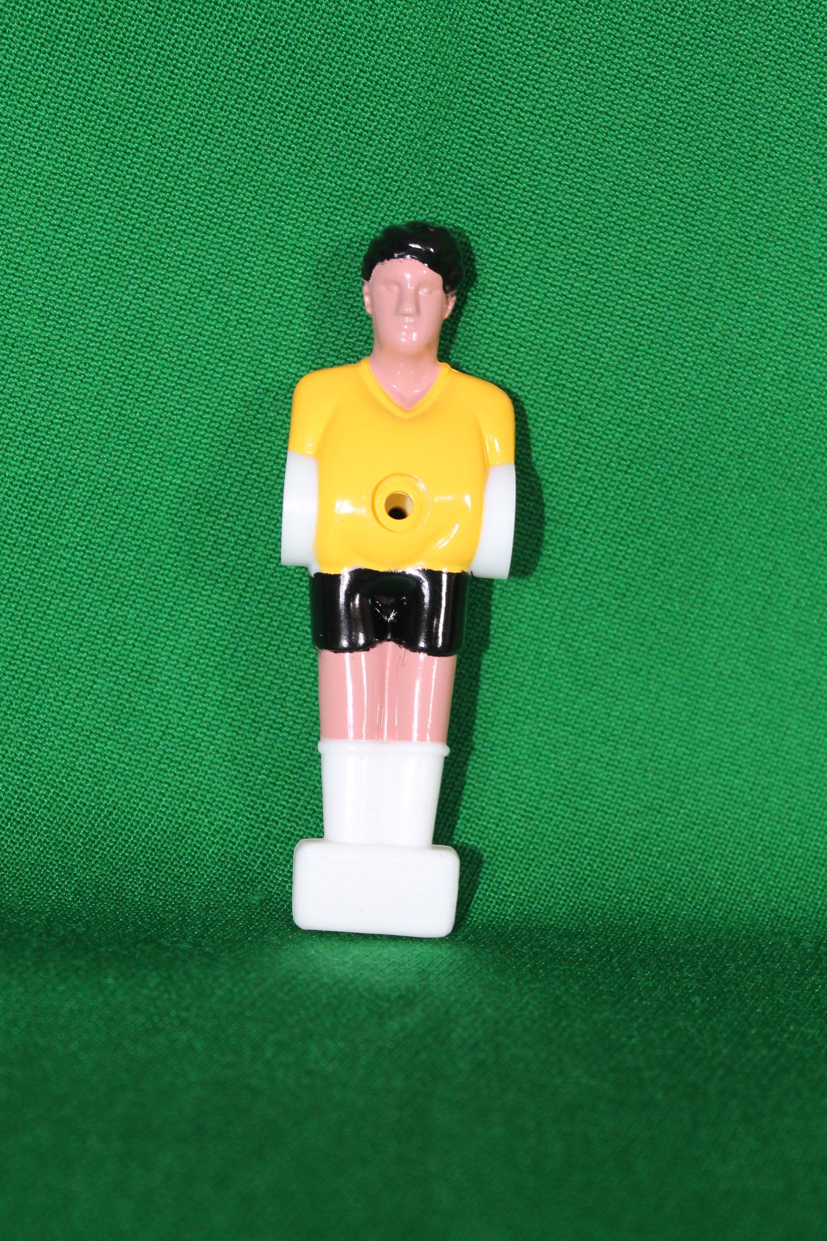 Hráč na stolný futbal, žlto-bielej farby, so zaobleným spodkom. Hráč je určený na priemer tyče 13 mm.